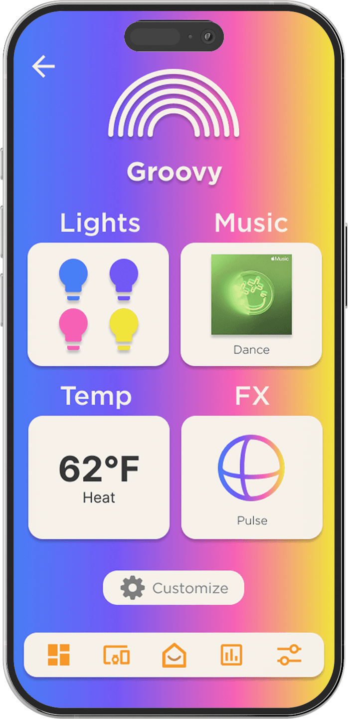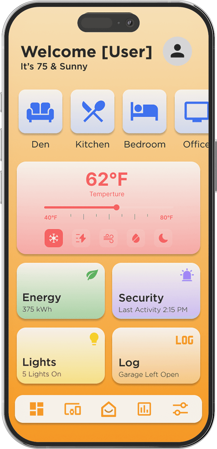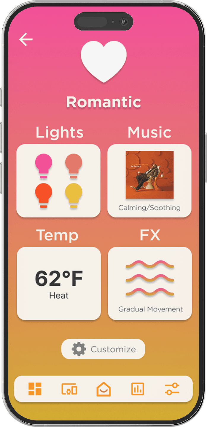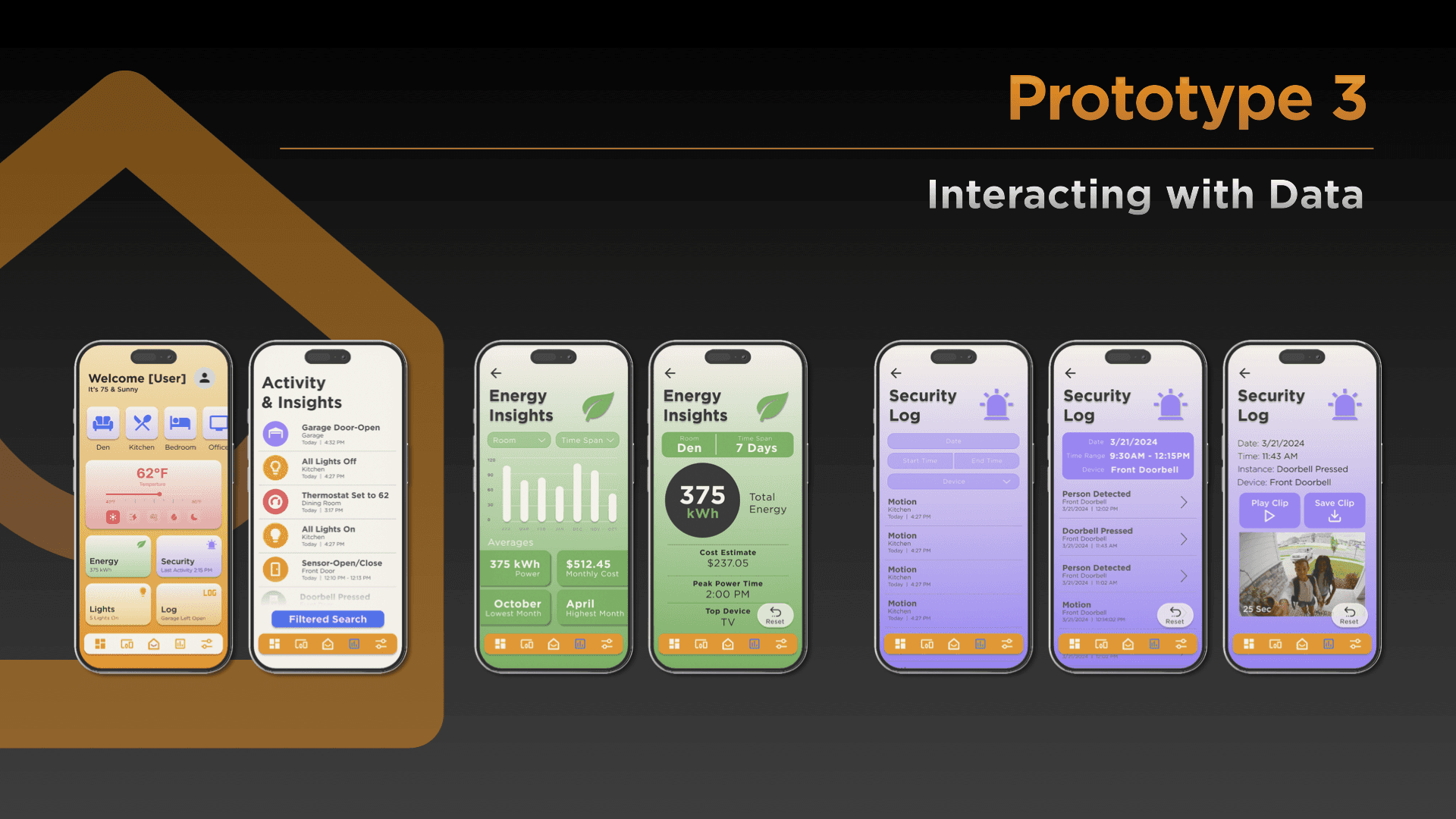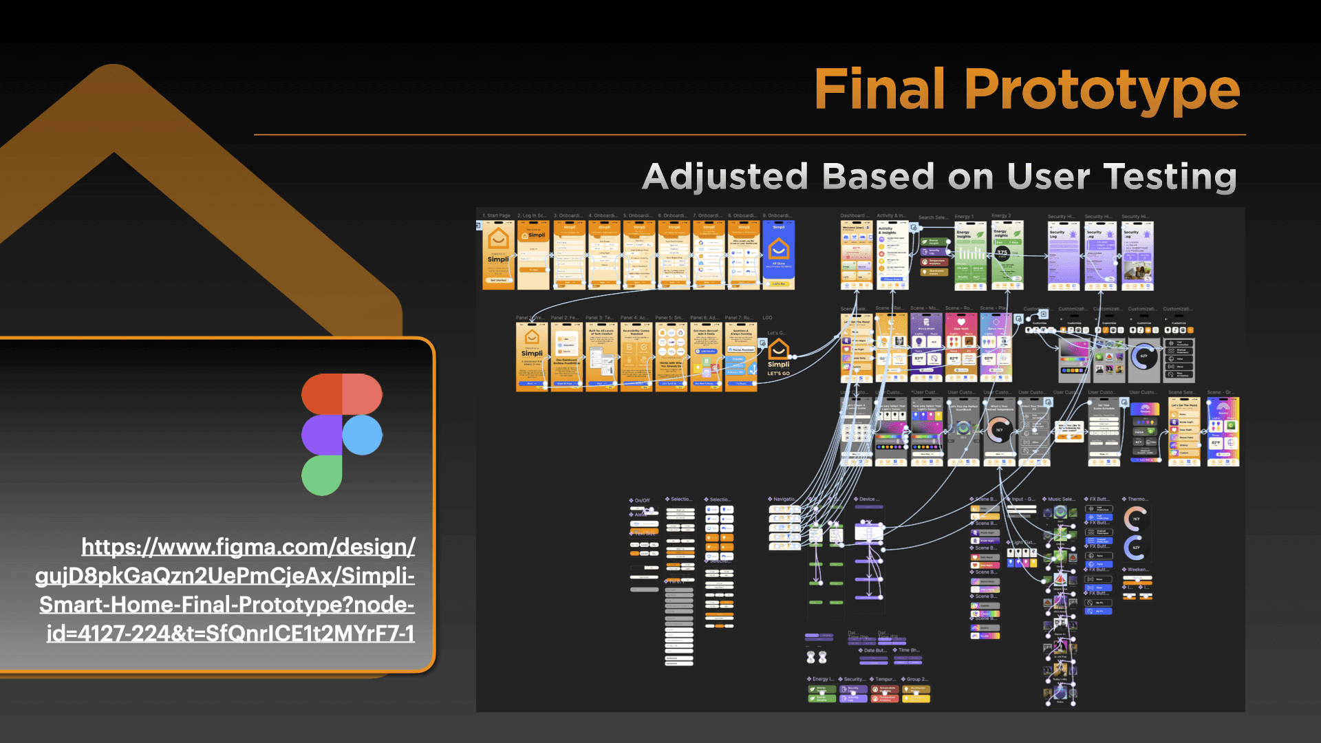 The refined prototype offers an end-to-end experience with user testing baked in, from personalized onboarding to accessible dashboards and mood-based automations. The visual system uses calming colors, friendly typography, and touch-friendly components to welcome every kind of user home.