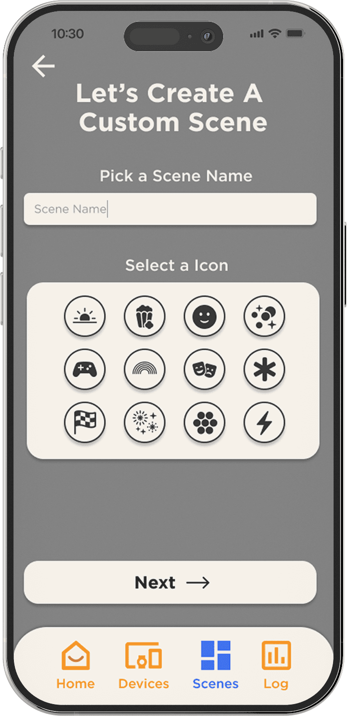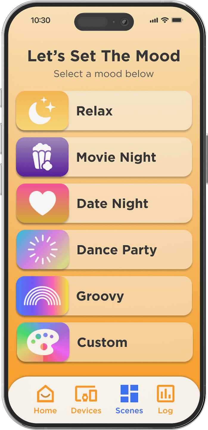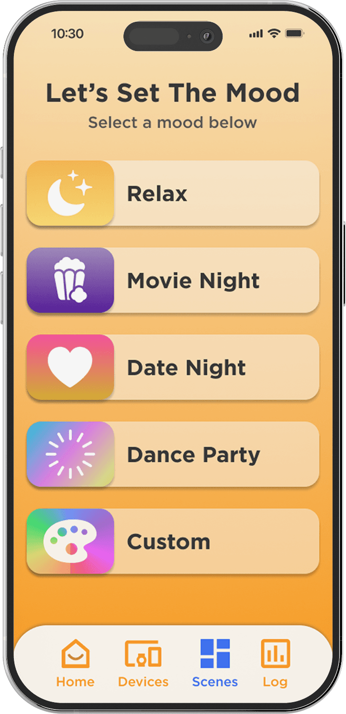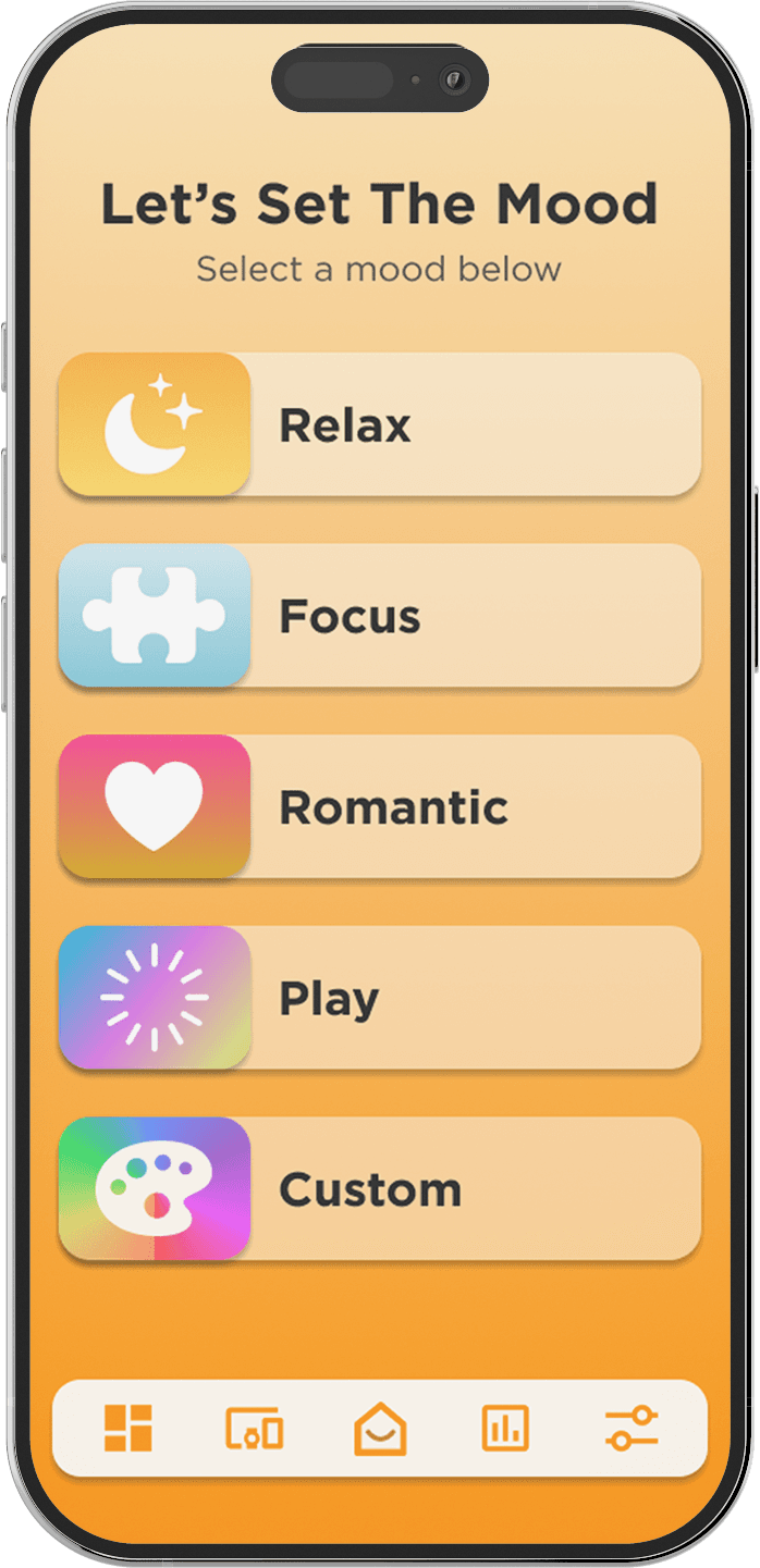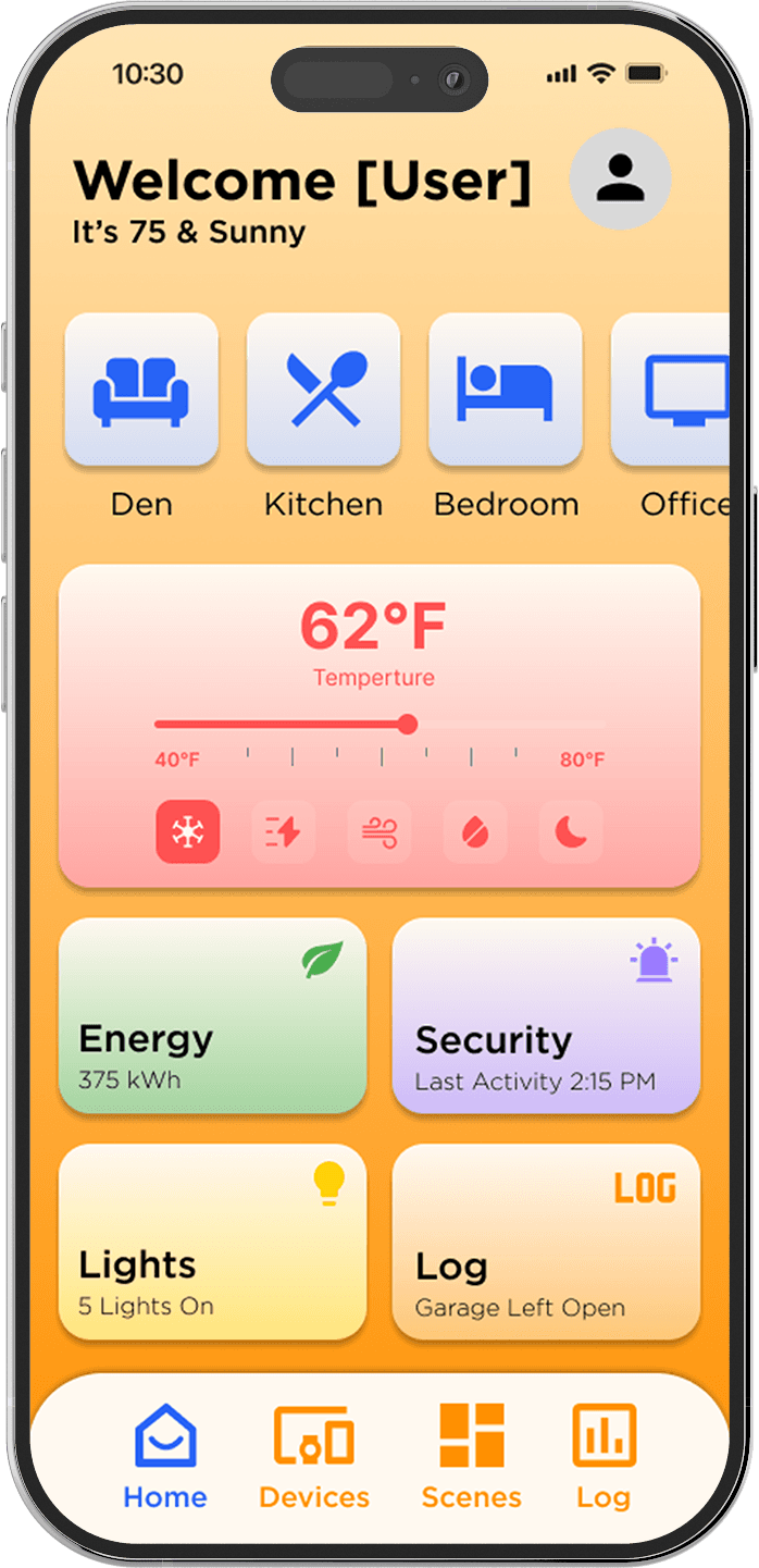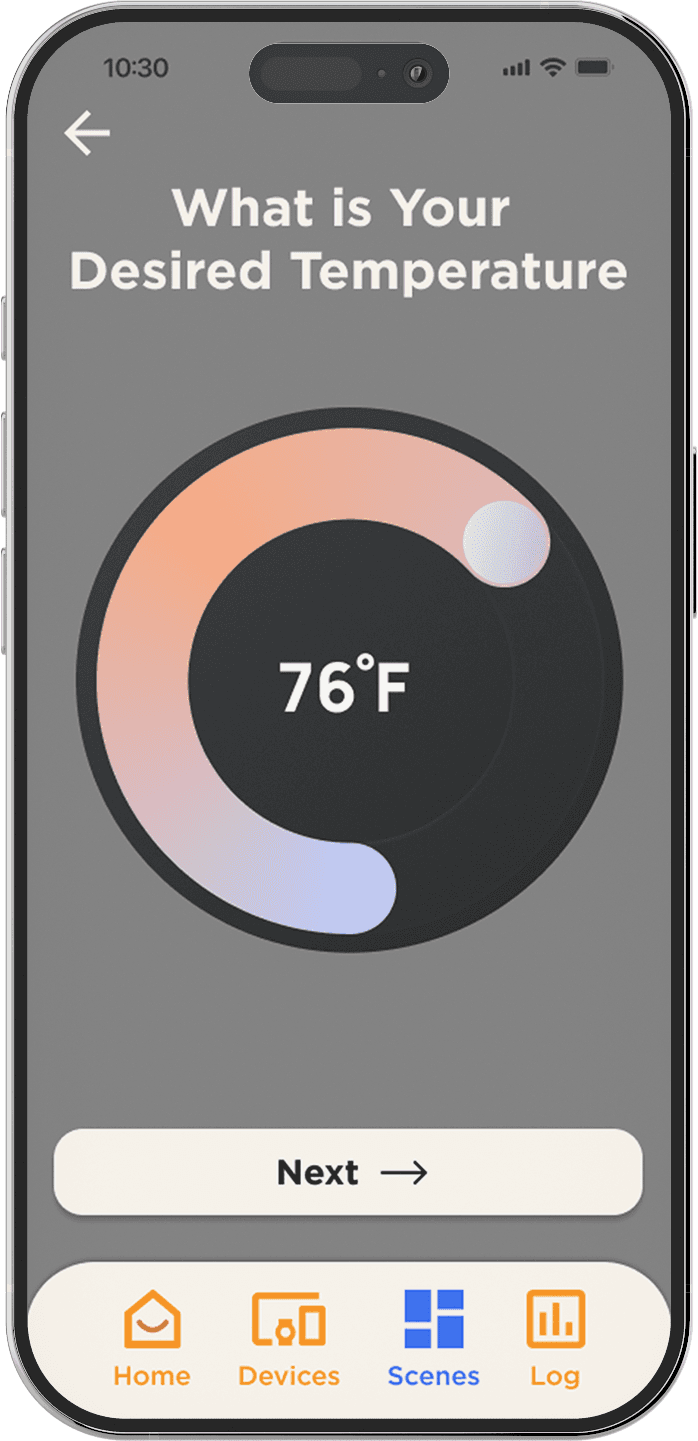 The refined prototype offers an end-to-end experience with user testing baked in, from personalized onboarding to accessible dashboards and mood-based automations. The visual system uses calming colors, friendly typography, and touch-friendly components to welcome every kind of user home.