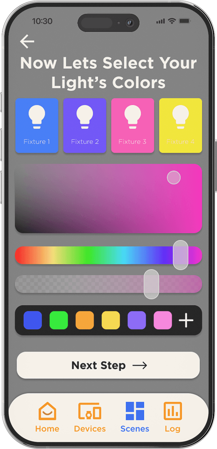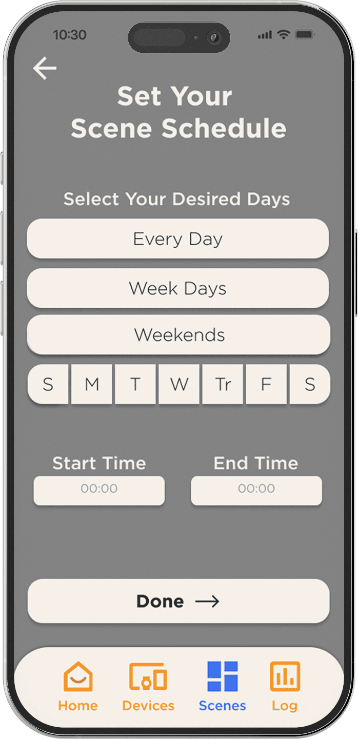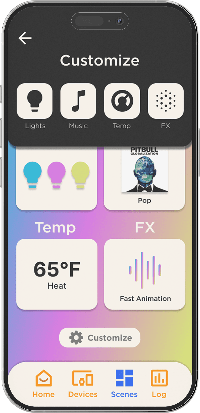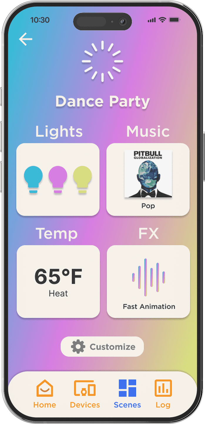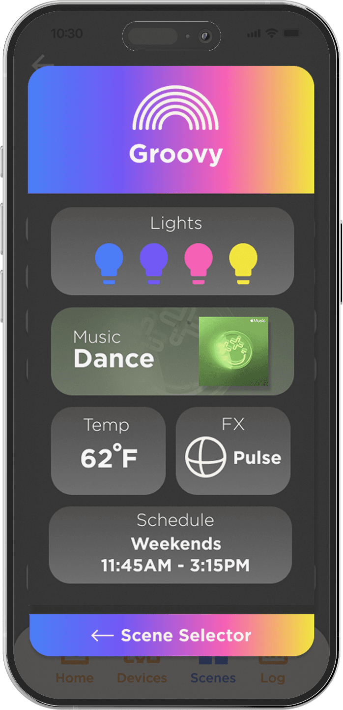 The refined prototype offers an end-to-end experience with user testing baked in, from personalized onboarding to accessible dashboards and mood-based automations. The visual system uses calming colors, friendly typography, and touch-friendly components to welcome every kind of user home.