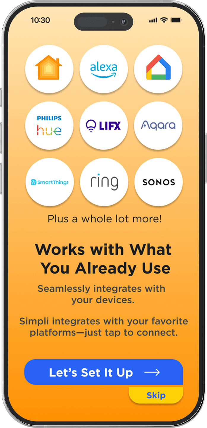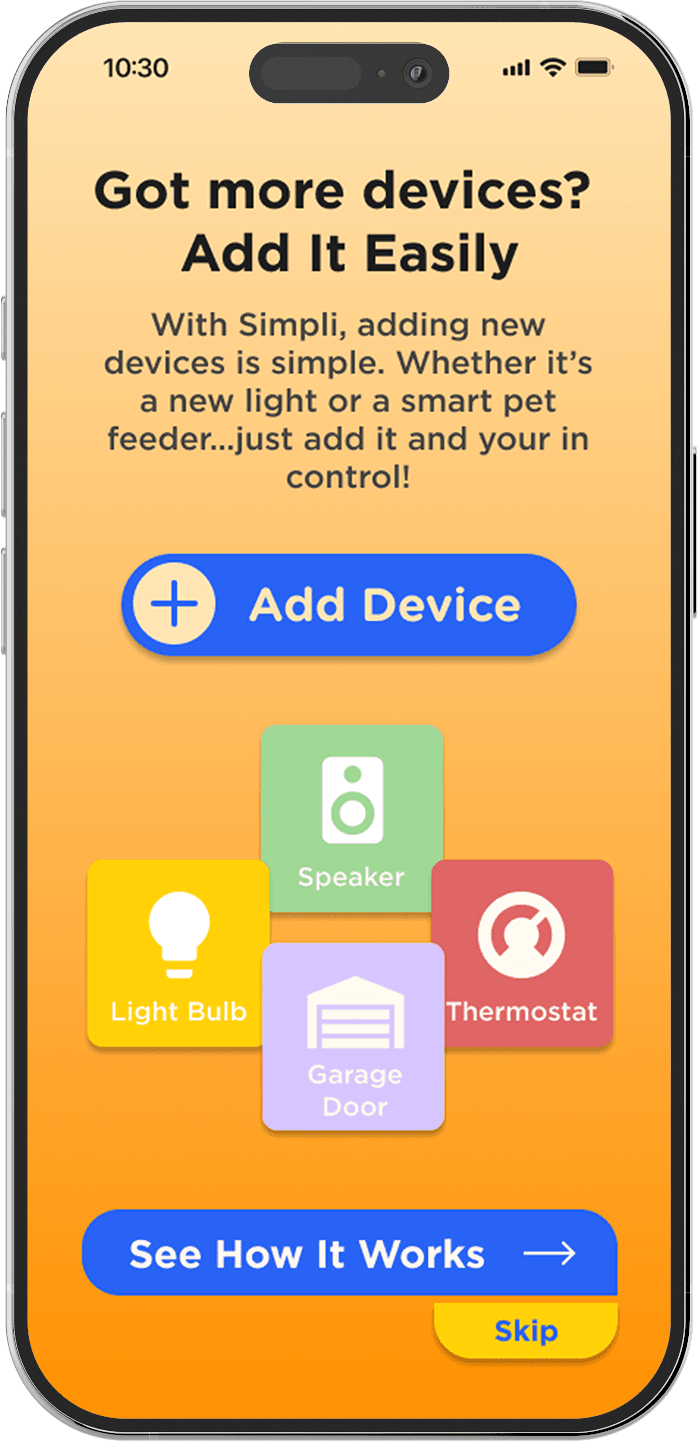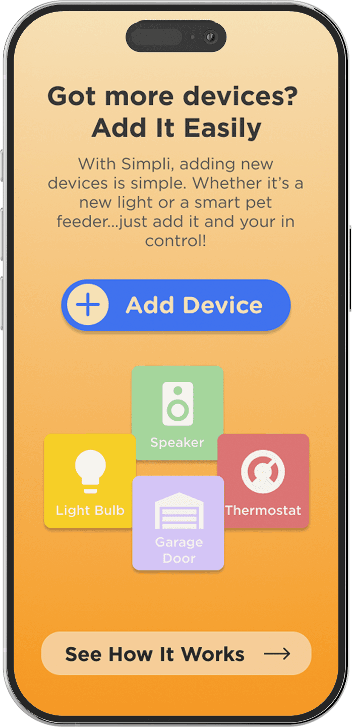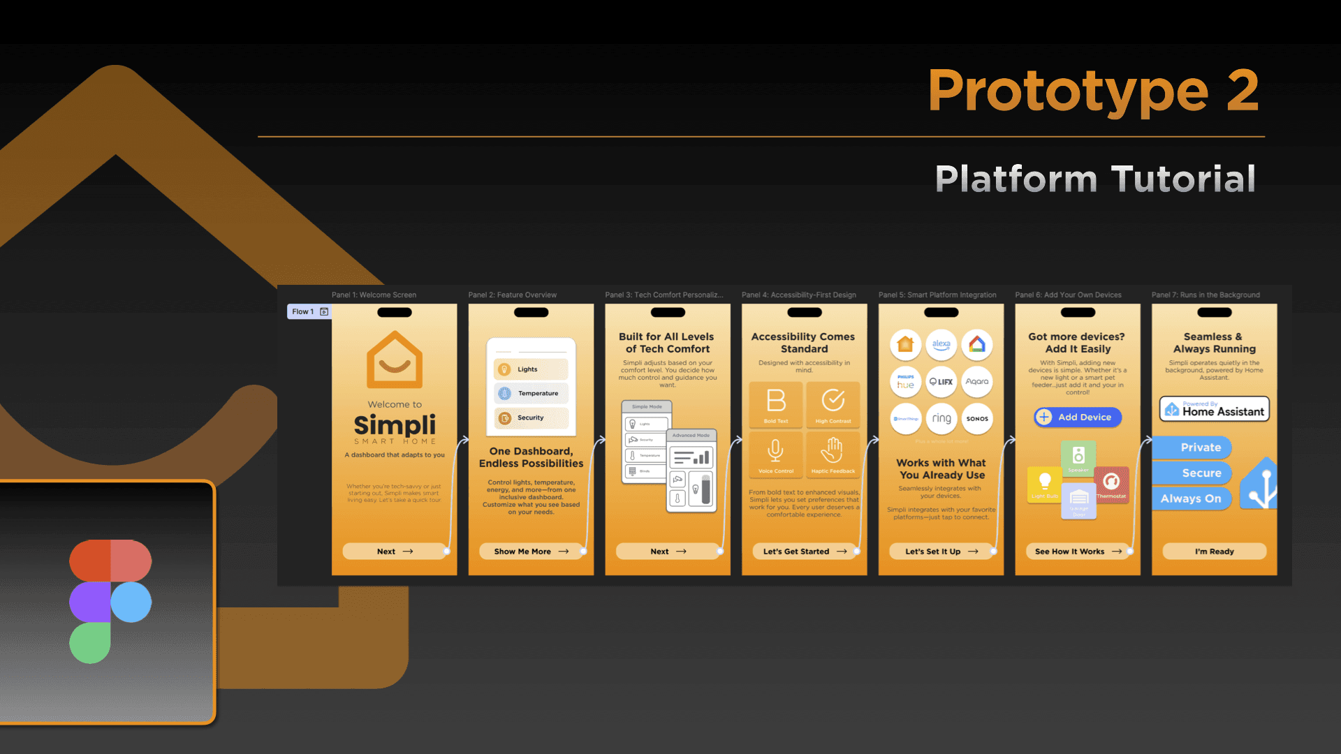 Simpli Smart Home is a customizable dashboard designed as a layer on top of existing smart home platforms. Built with inclusive design principles, the app simplifies onboarding, enhances accessibility, and brings emotional warmth to smart home control. It offers both beginner-friendly experiences and advanced customization for tech-savvy users.