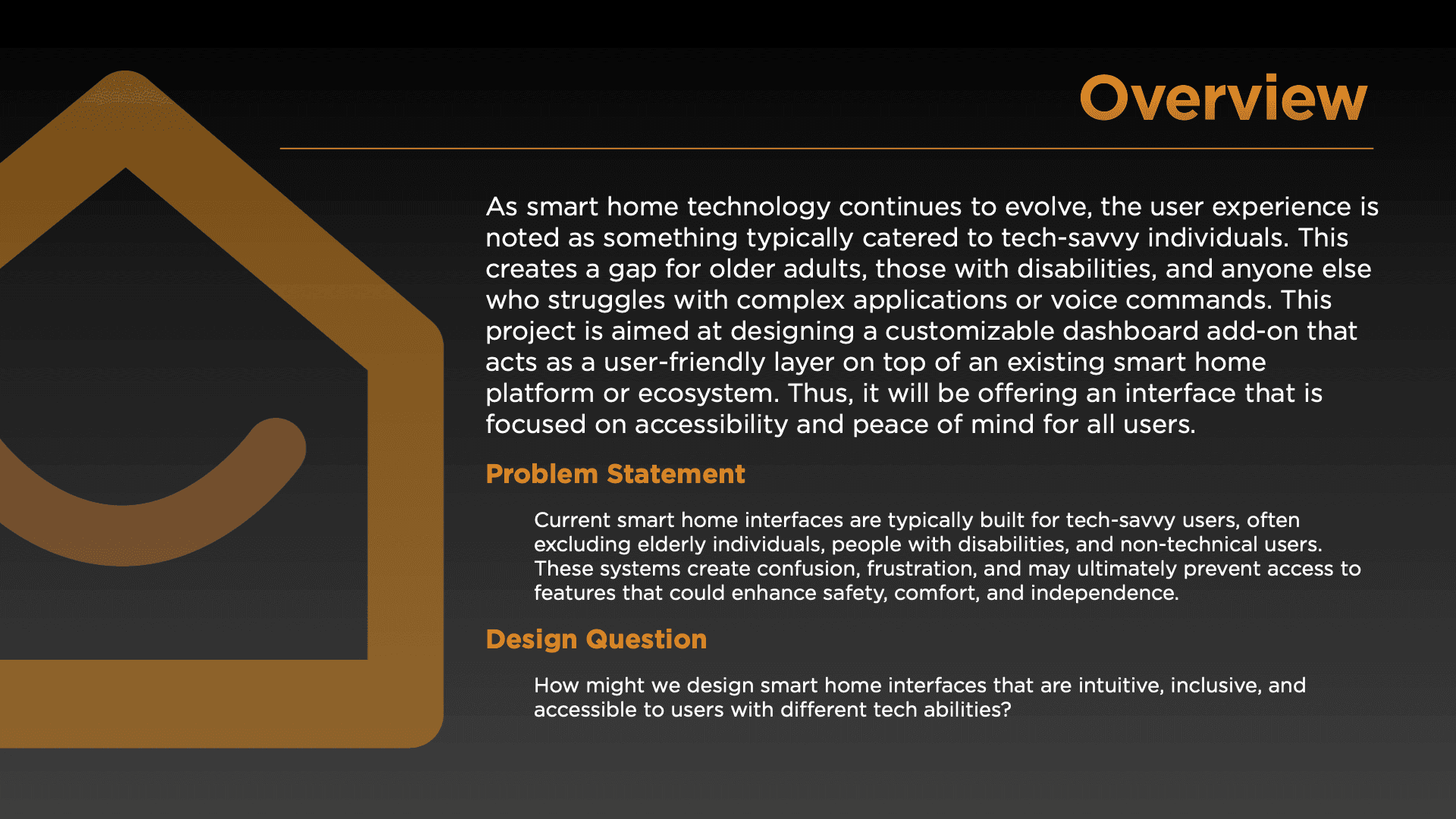 Smart home platforms like Apple Home and Google Home often leave out a critical group: elderly users, those with disabilities, and anyone overwhelmed by complex setups or unfamiliar jargon. With confusing onboarding, overloaded interfaces, and a lack of emotional resonance, these tools unintentionally alienate those who could benefit the most.