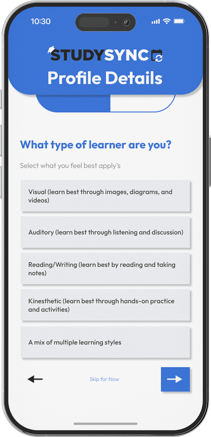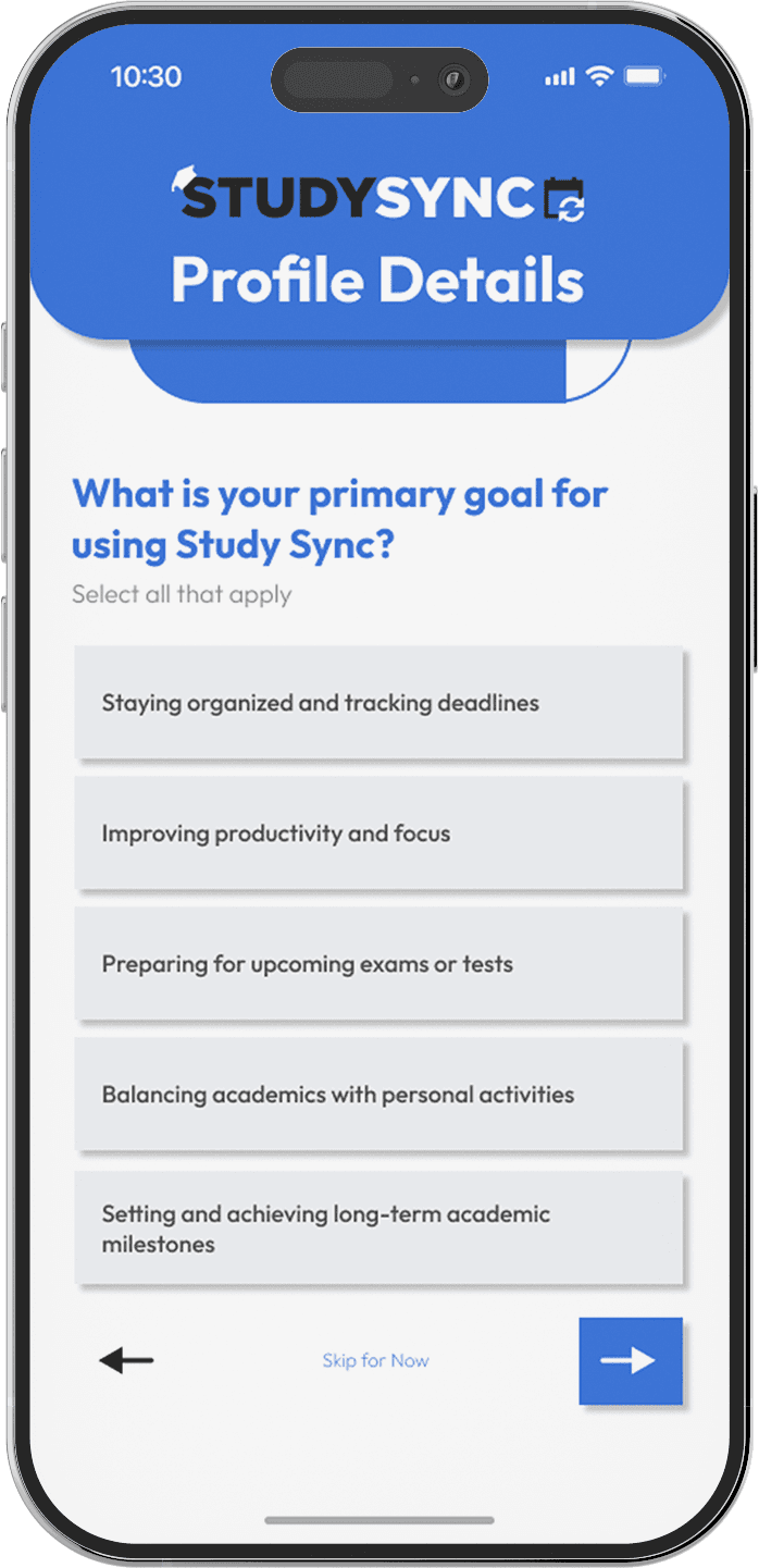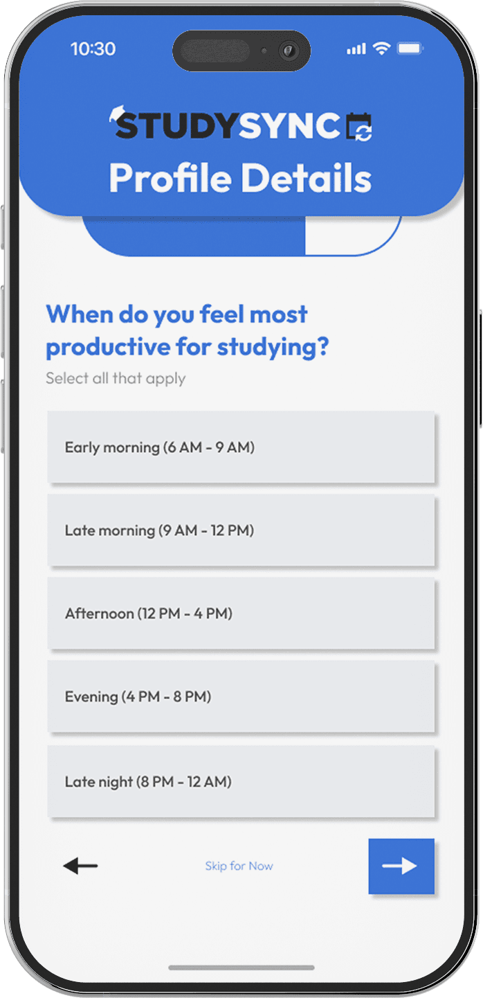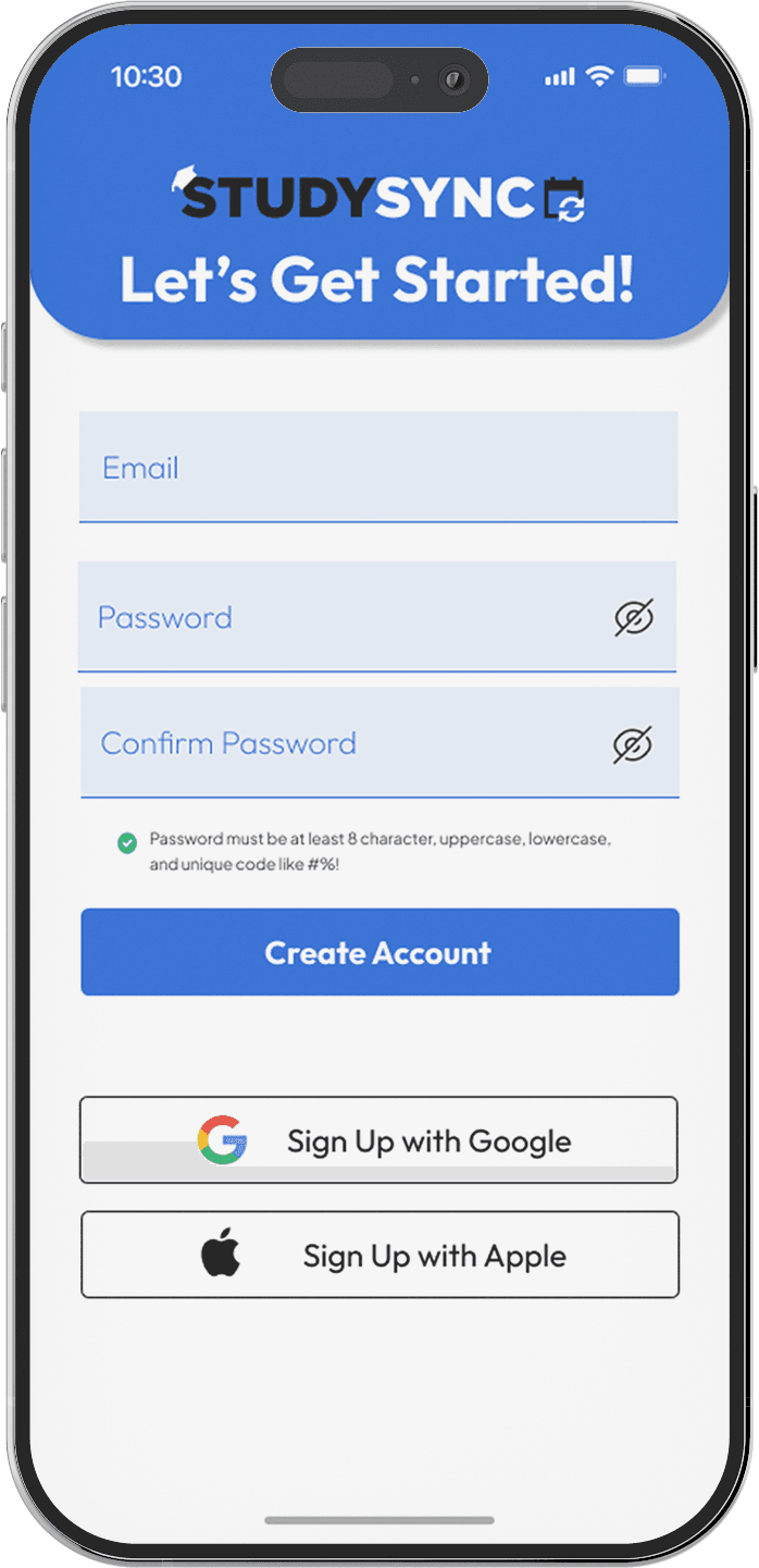 StudySync is an AI-powered study planning app built specifically for undergraduate students. Unlike standard productivity tools, StudySync intelligently generates custom study schedules based on syllabi, personal calendars, learning styles, and rest needs. Designed with empathy, flexibility, and user insight, it brings structure and motivation to academic planning—syncing real deadlines with real life.